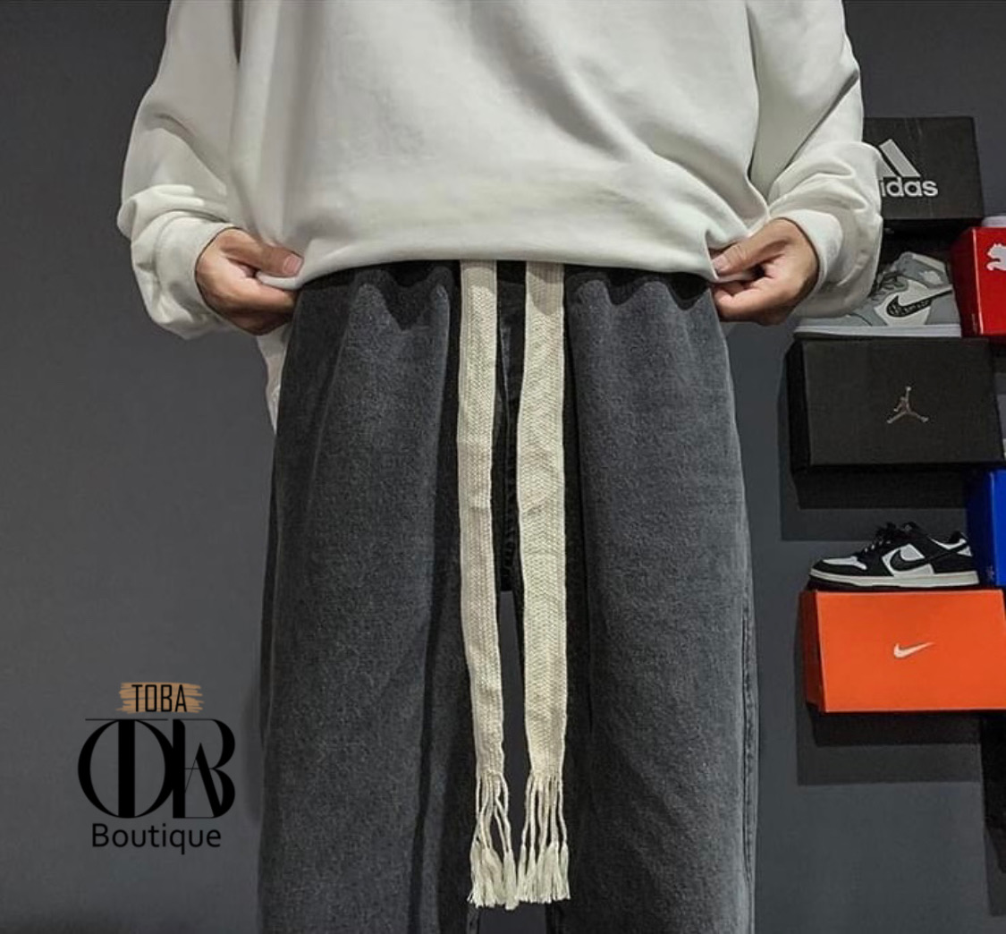 Quần jean Unisex chun ống rộng, Quần đai chun, Dây rút bản to chất vải jeans bò cao cấp bụi phố top xu hướng 2023