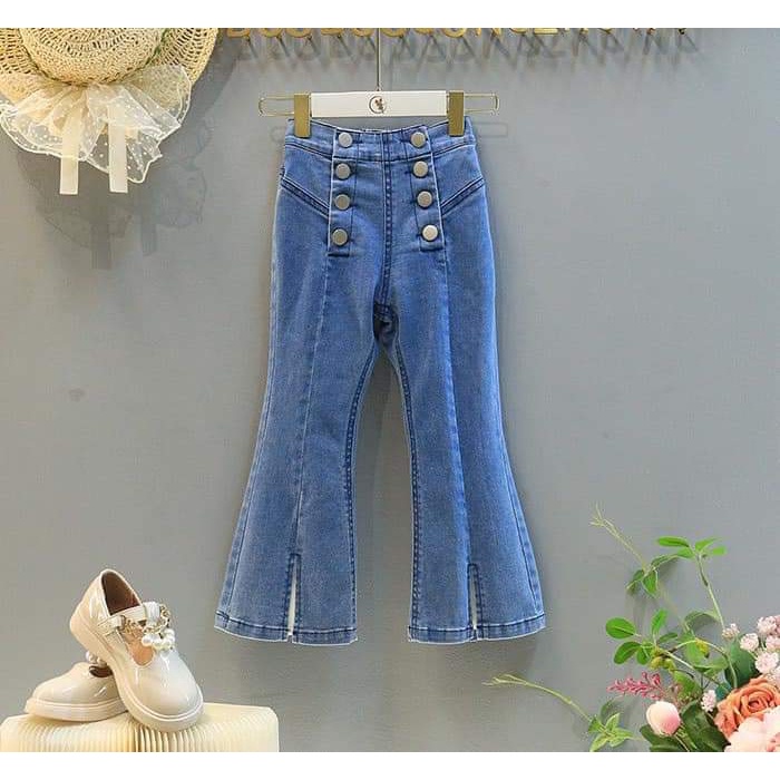 Thời trang trẻ em & trẻ sơ sinh > Quần áo bé gái > Quần > Quần jeans || Quần jeans dài ống loe đính nút cực sang chảnh cho bé gái 20-30kg