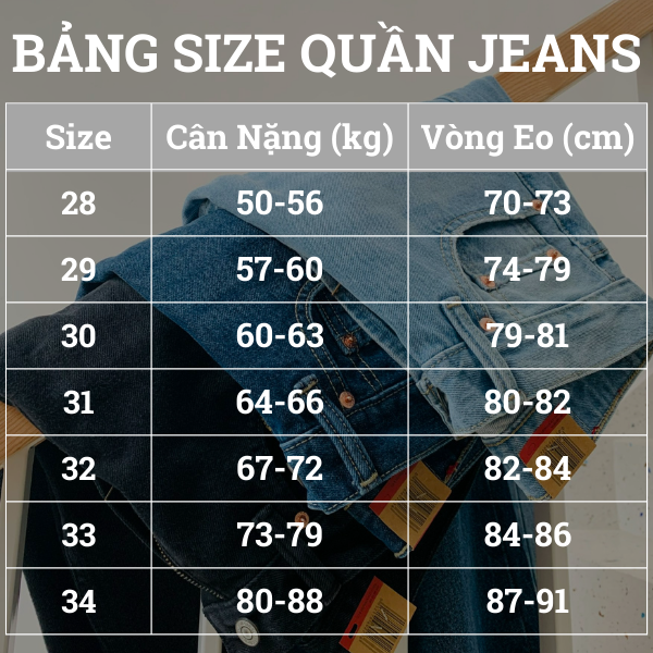 * Size 31: cân nặng(64-66)kg - Vòng eo(80-82)cm