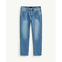 Slim fit: Kiểu quần jean nam không quá chặt, không quá lỏng lẻo. Đây là kiểu quần jeans thịnh hành nhất hiện nay, kiểu quần này có form dáng ôm dọc theo chiều dài của chân. Trong đó, phần ống rộng ở bắp đùi và thu nhỏ dần xuống cổ chân nhưng không bó sát và không túm ống với độ mở ống vừa, không quá nhỏ.