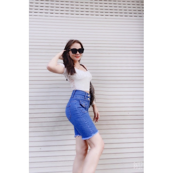 Giới thiệu sản phẩm Quần Jeans Ngố Nữ Lưng Cao Túi Đắp Siêu Co Giãn Nâng Mông Tôn Dáng