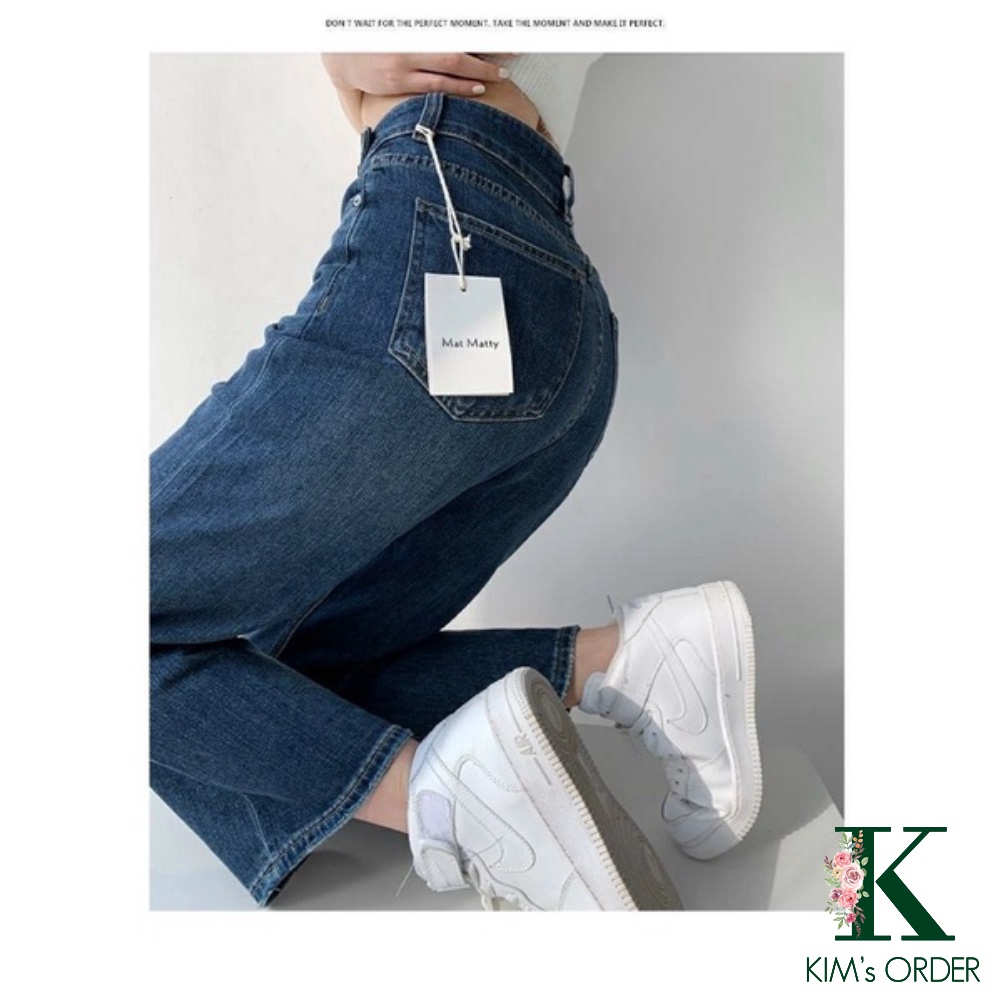 𝗧𝗲̂𝗻 𝘀𝗮̉𝗻 𝗽𝗵𝗮̂̉𝗺: Quần jean nữ màu xanh đậm ống suông loại 1 hai cúc lưng cao phom rộng phong cách Ulzzang Hàn Quốc chất dày dặn xu hướng