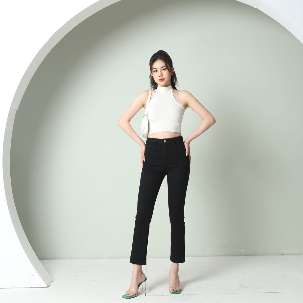 Giới thiệu Quần Jeans Nữ Ống Đứng Lưng Cao Co Giãn Đen Trơn Gấu Thường CT Jeans