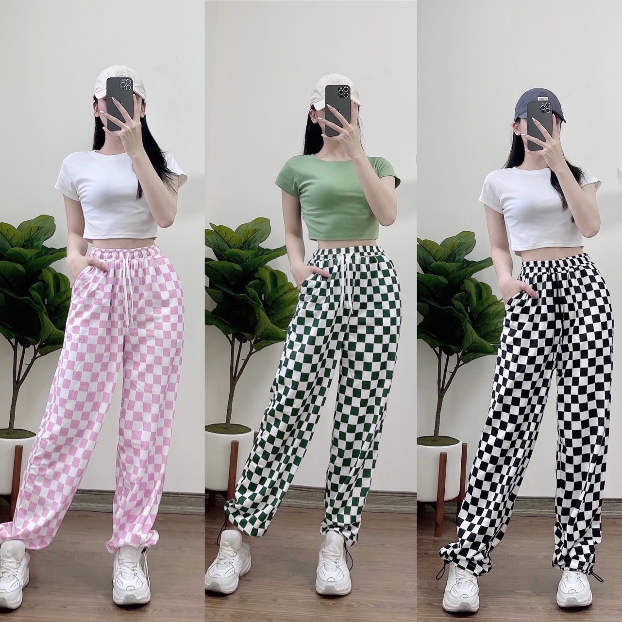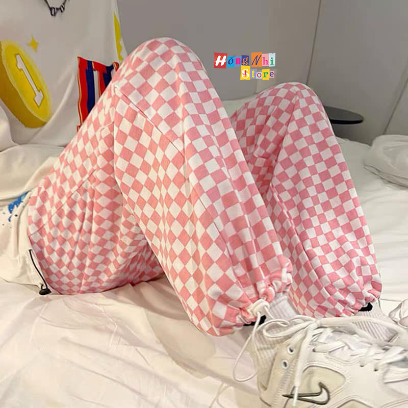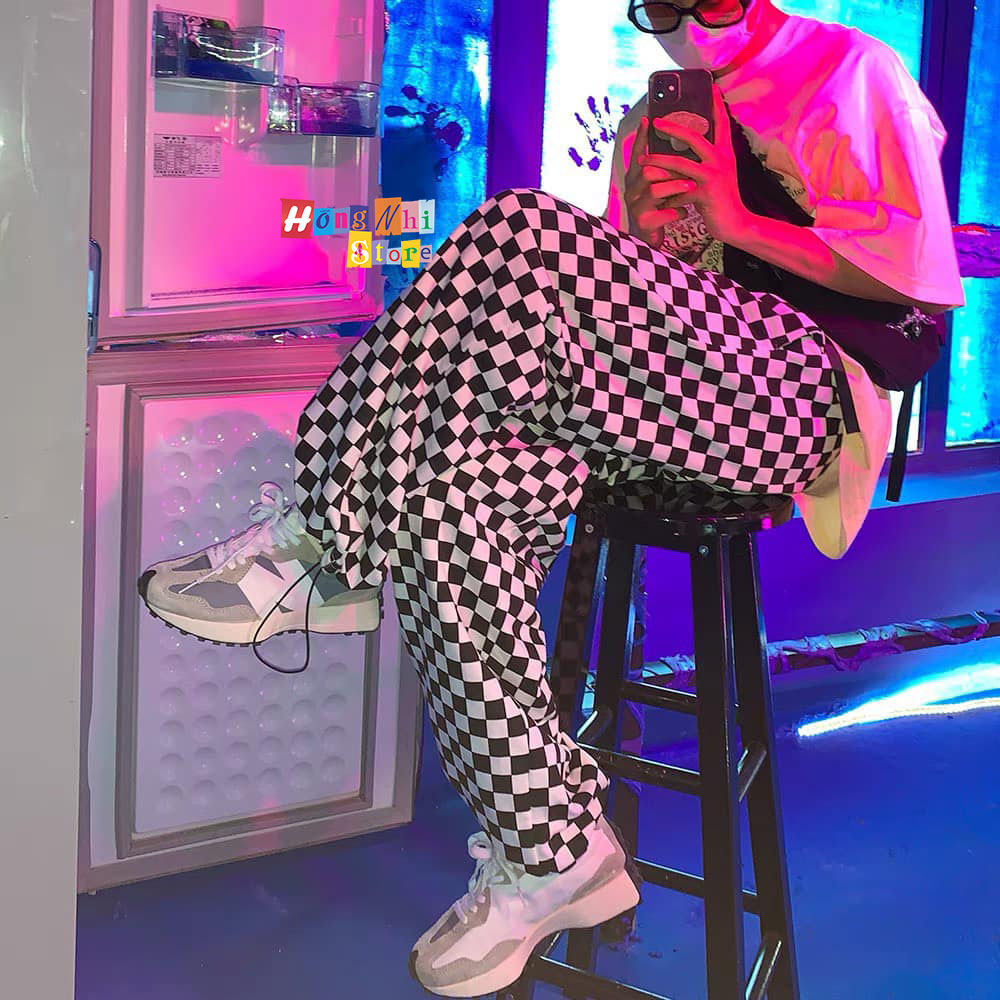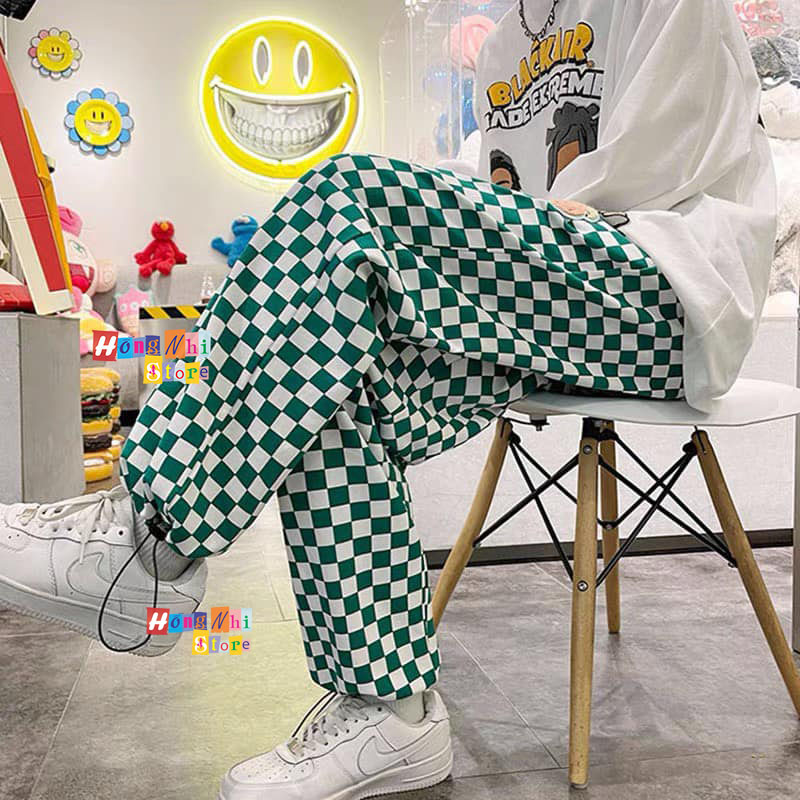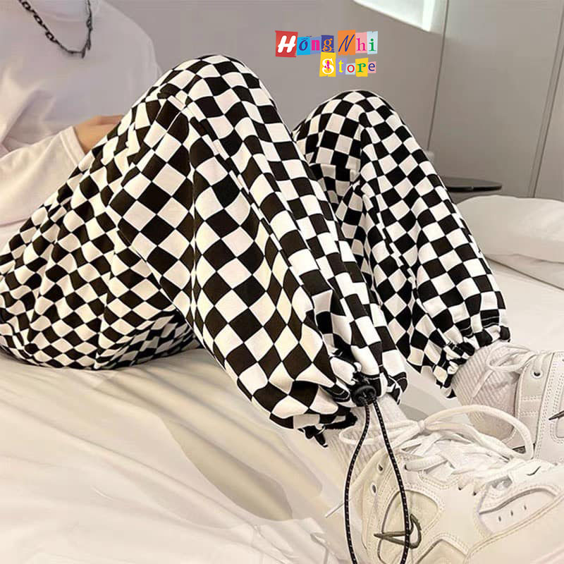 Giới thiệu Quần Jogger 3D Caro Ulzzang Unisex Jogger Loang Màu Dây Rút Lai Ống Rộng V2 - MM