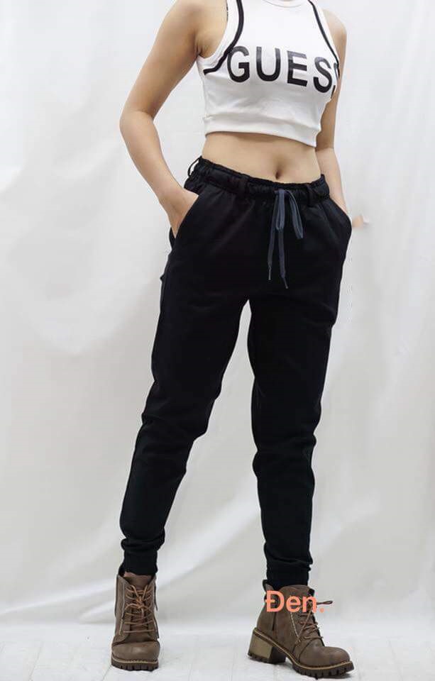 Quần lưng thun có dây rút.