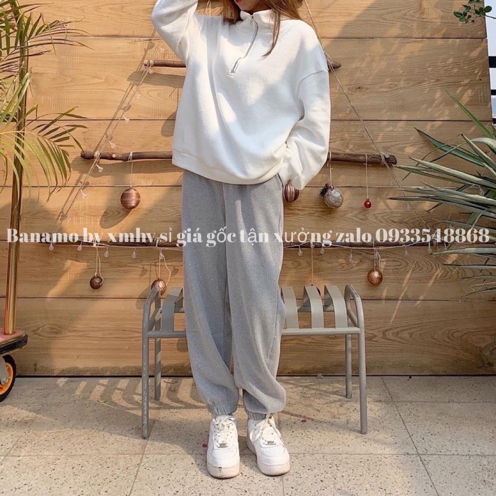 Giới thiệu Quần Jogger nỉ tăm dáng rộng ống boom bo gấu 4 màu phong cách Ulzzang năng động thời trang Banamo Fashion 295