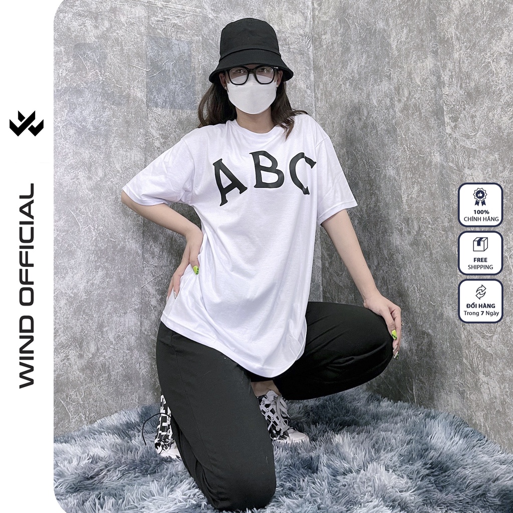 Giới thiệu Quần jogger ống rộng phối áo thun tay lỡ ABC trắng WIND Unisex form rộng overszie nam nữ