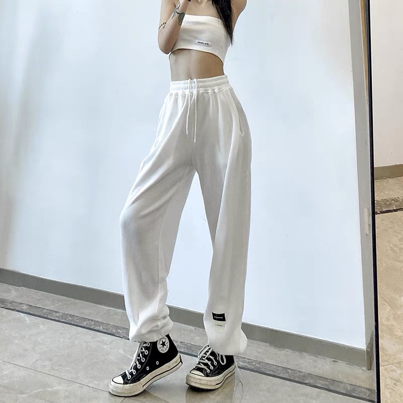 Giới thiệu Quần Jogger Ống Rộng Thêu Chân Chất Thun Xịn Dày Ống Bo Chun Hình Chữ Thêu Form Rộng Dài 95cm
