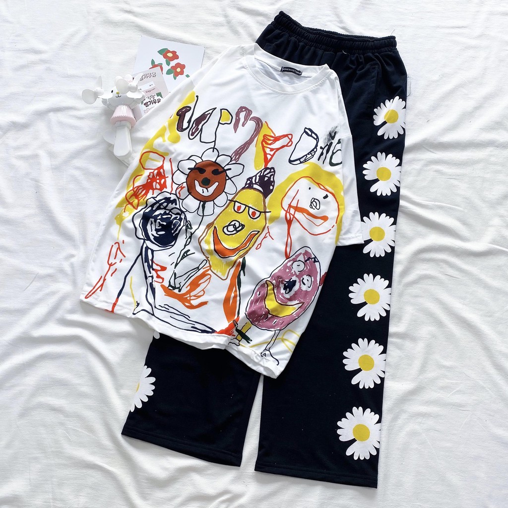 Giới thiệu Quần Jogger Pant Ulzzang Unisex Jogger Dây Rút Lai In Hình Hoa Cúc Ống Rộng Dài - MM