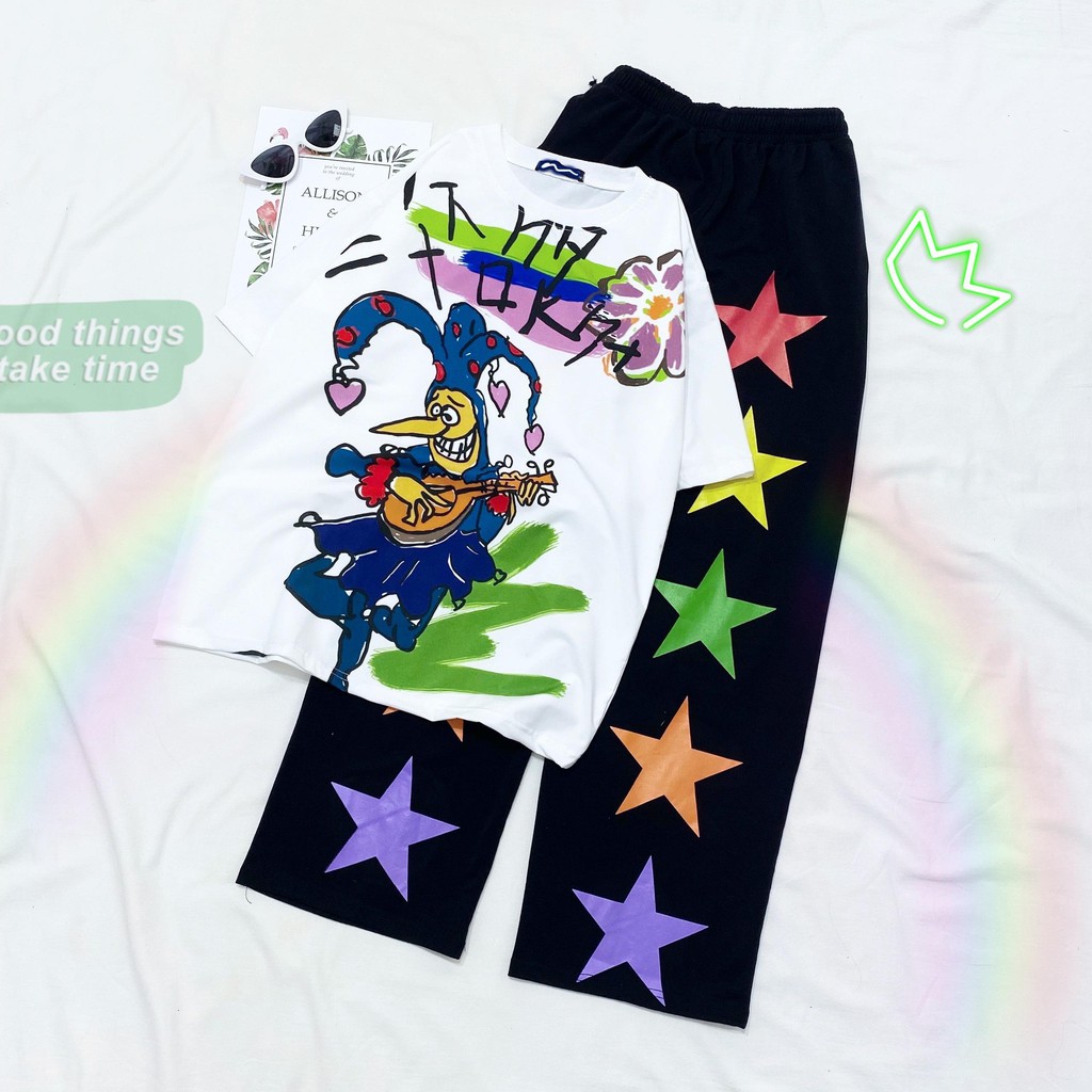 Giới thiệu Quần Jogger Pant Ulzzang Unisex Jogger Dây Rút Lai In Hình Ngôi Sao Ống Rộng Dài - MM