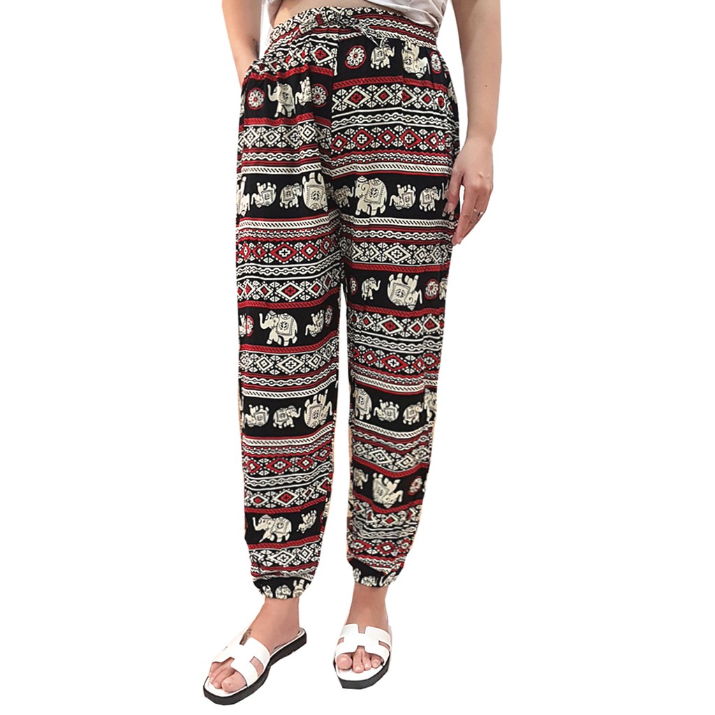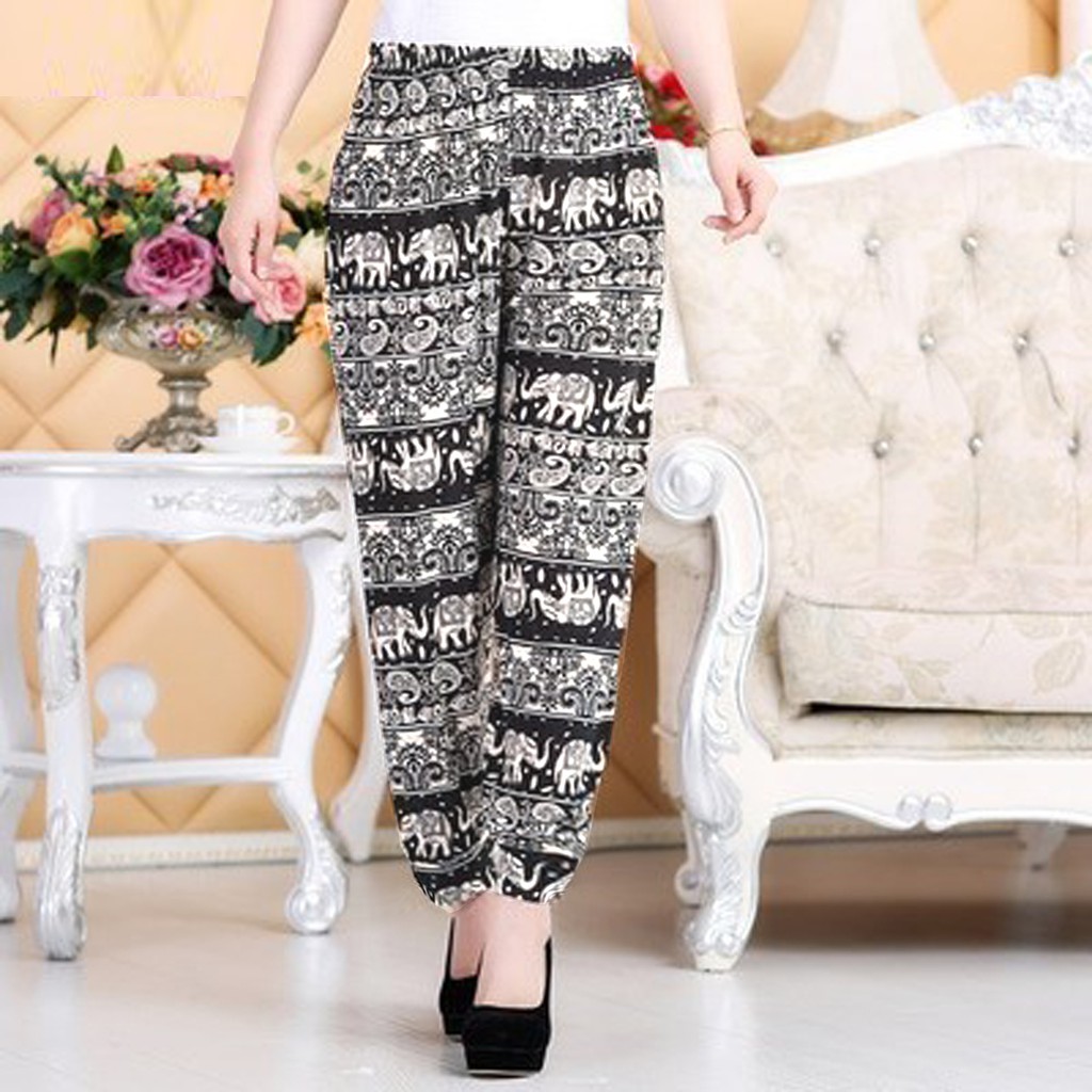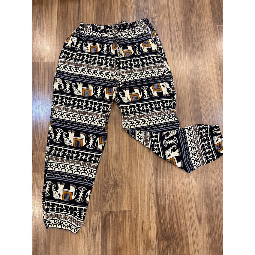 Quần Lanh Alibaba Ống Rộng Bo Gấu Họa Tiết Thổ Cẩm