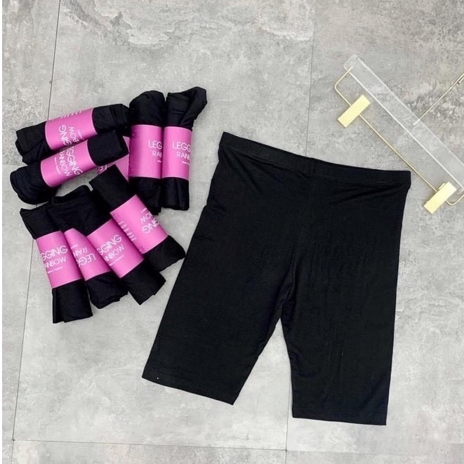 Quần legging lửng cạp chun vải cao cấp thun ngố co giãn tốt dáng ôm màu đen trơn