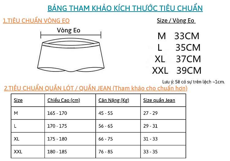 HƯỚNG DẪN CHỌN SIZE QUẦN LÓT NAM