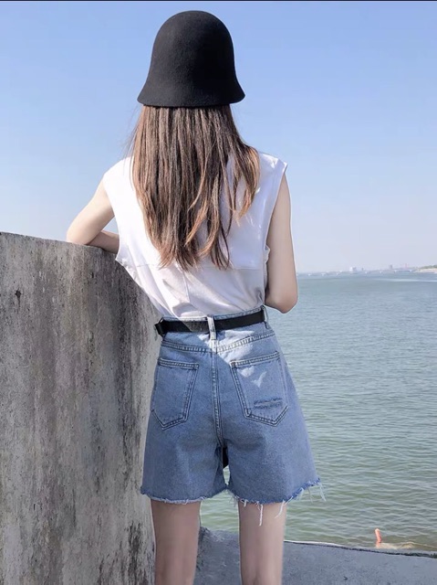 Quần ngố jean rách nhẹ một bên
