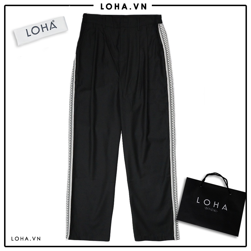 Giới thiệu Quần nỉ dáng suông sọc hoạ tiết cho nam nữ unisex màu đen thời trang LOHA