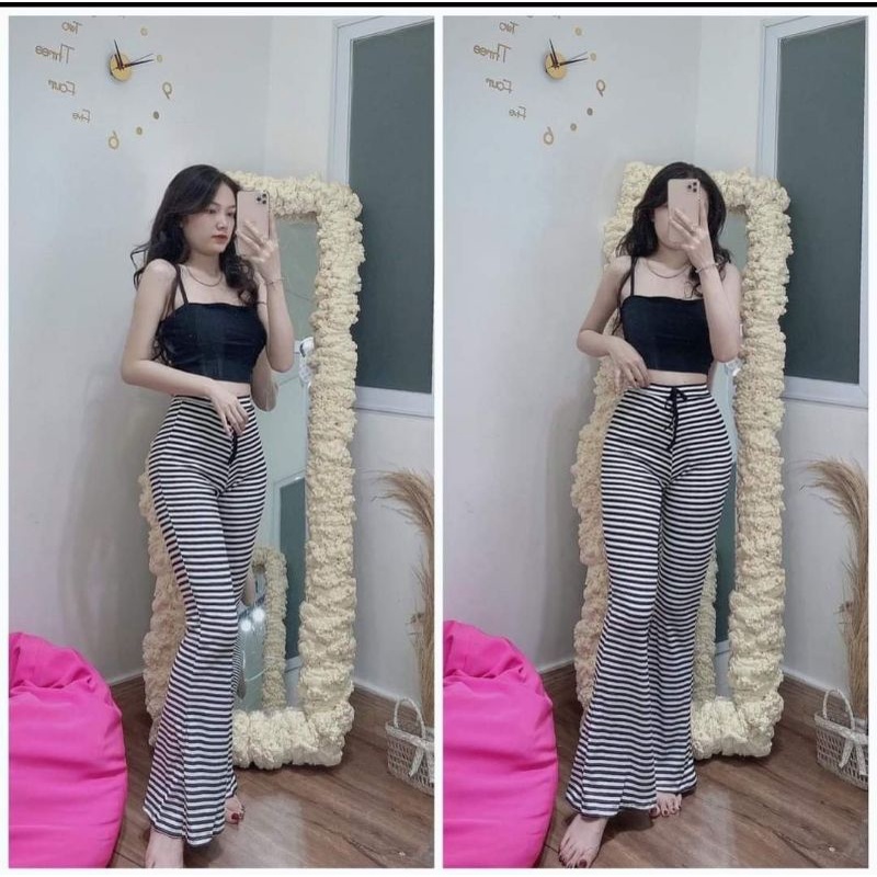 Quần ống loe cạp cao kèm áo dây bún (kèm ảnh và video thật) XƯỞNG MAY TC2