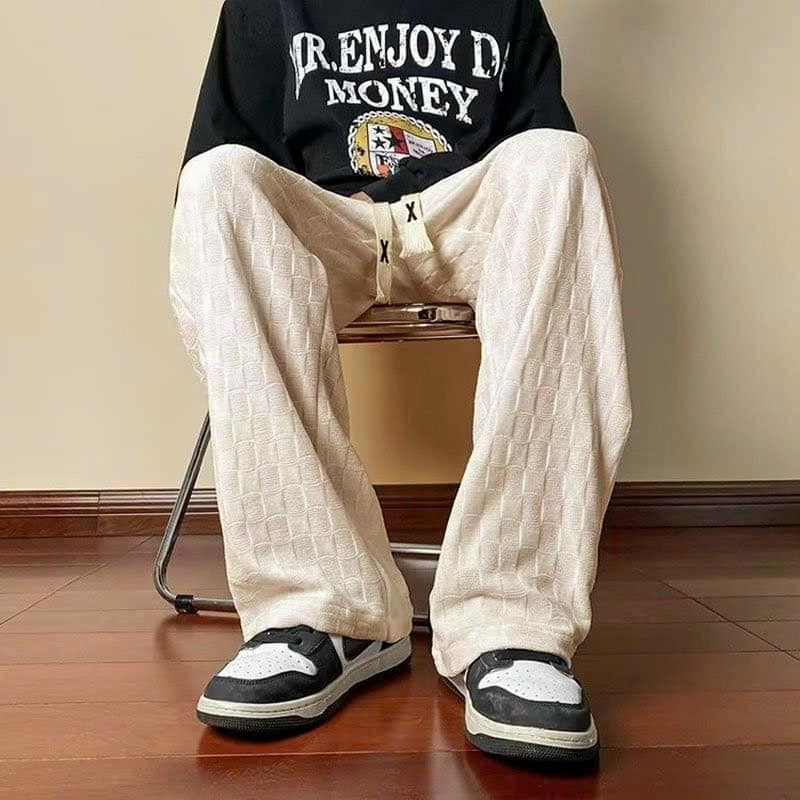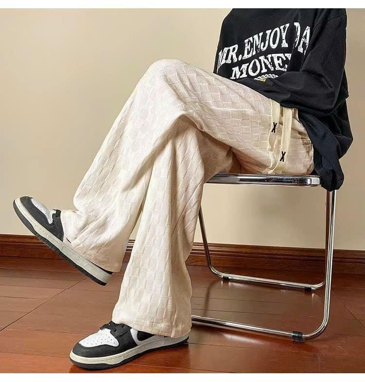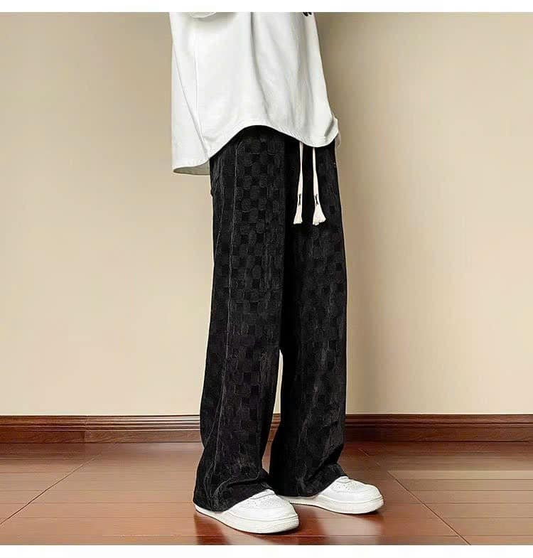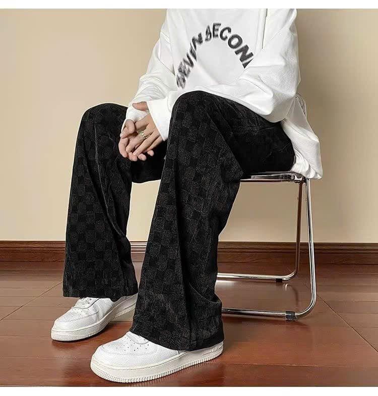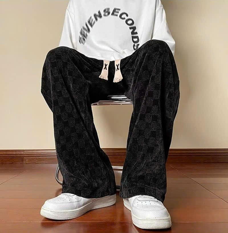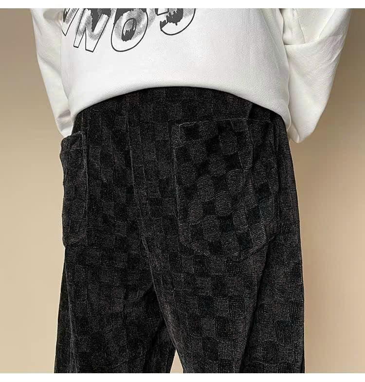 Quần Ống Rông Nam Dáng Suông Nhung Ô Vuông Mềm Mại Thời Trang Siêu Đẹp
