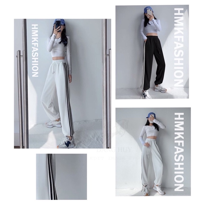 Giới thiệu Quần Ổng Rộng_Quần Jogger Thể Thao nam nữ 3 Sọc Có Dây Rút Gấu Quần