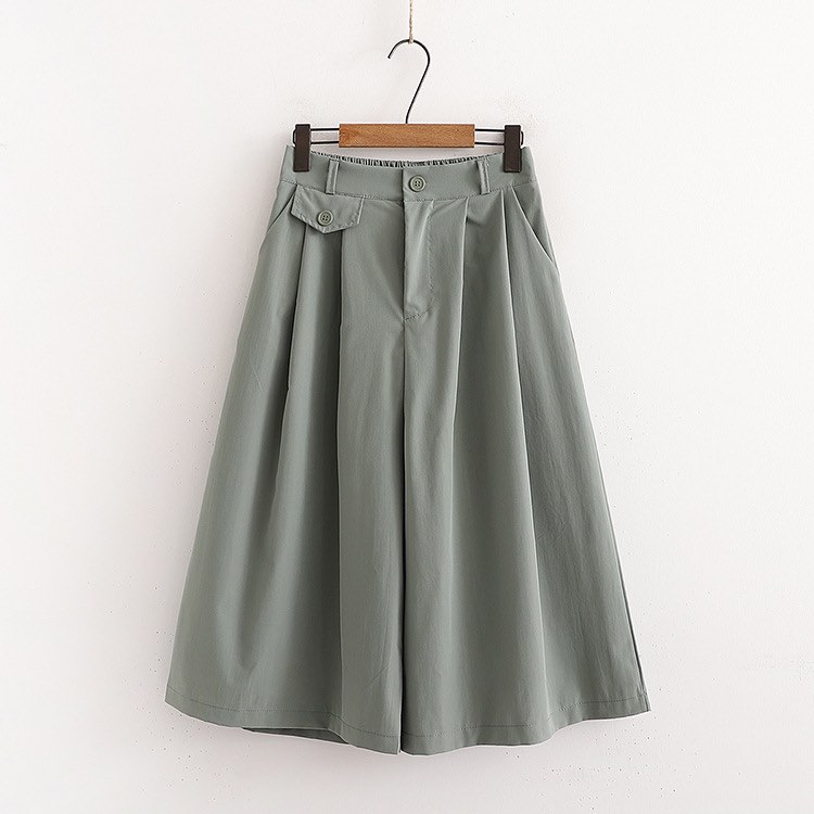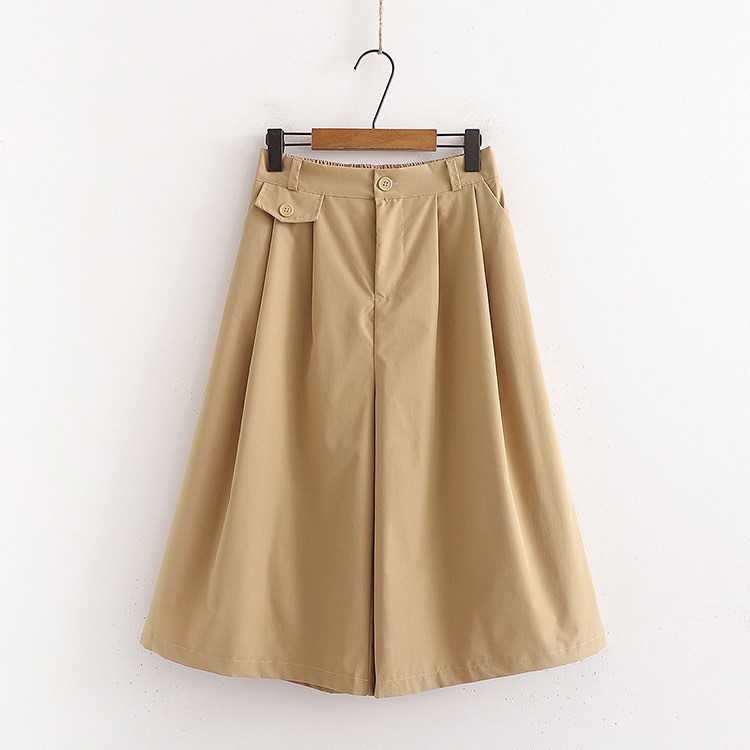 Quần qua gối đơn giản rộng rãi cạp cao ống rộng ống rộng