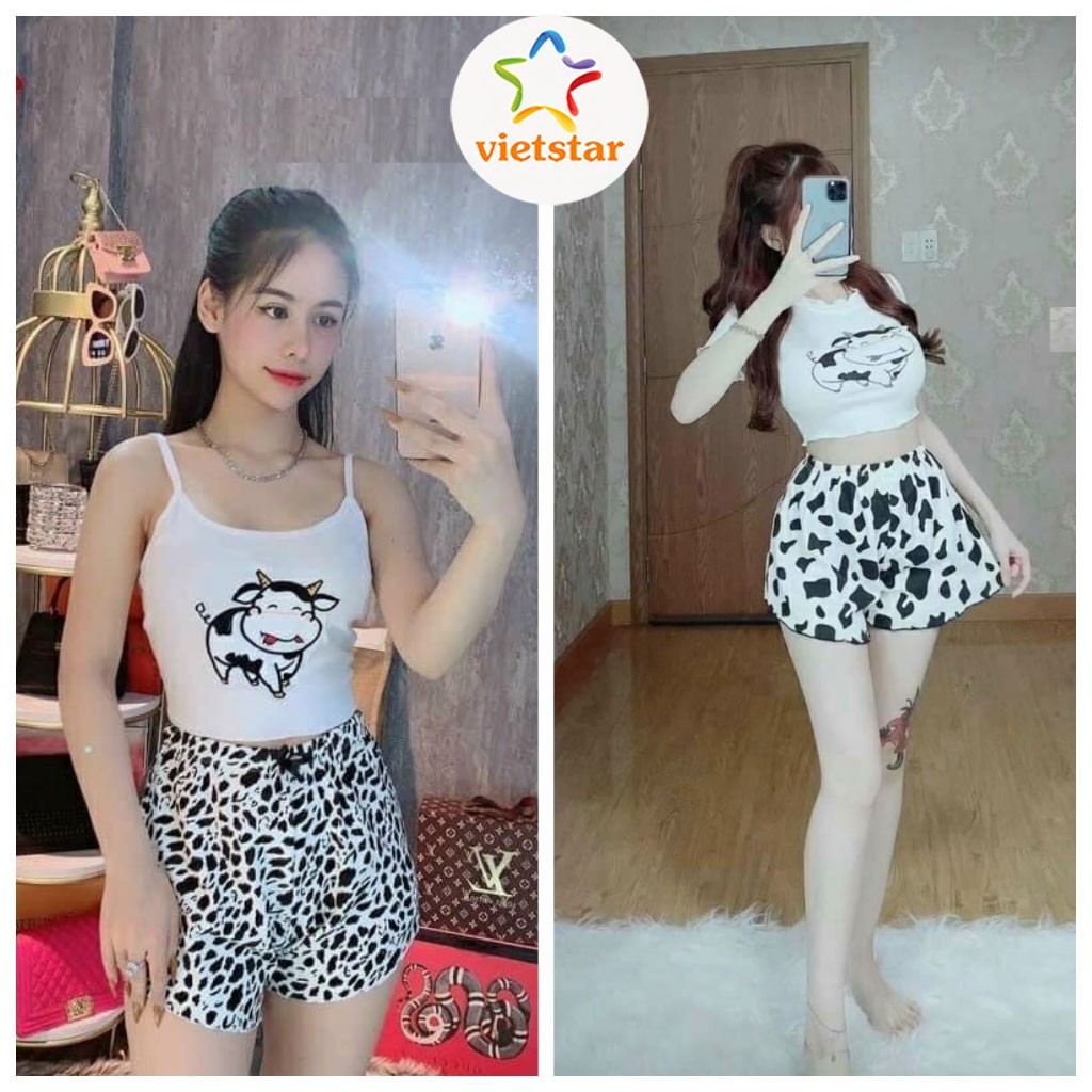 Giới thiệu Quần short bò sữa DAIRY COWS quần đùi nữ mặc nhà loang vằn vải thun mát - VIETSTAR