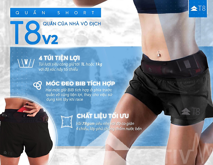 Quần Chạy Bộ/Chạy Địa Hình Nữ T8 Sherpa Shorts V2 mang lại các ưu điểm vượt trội