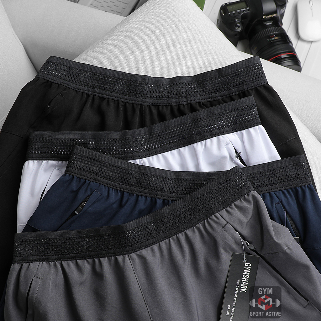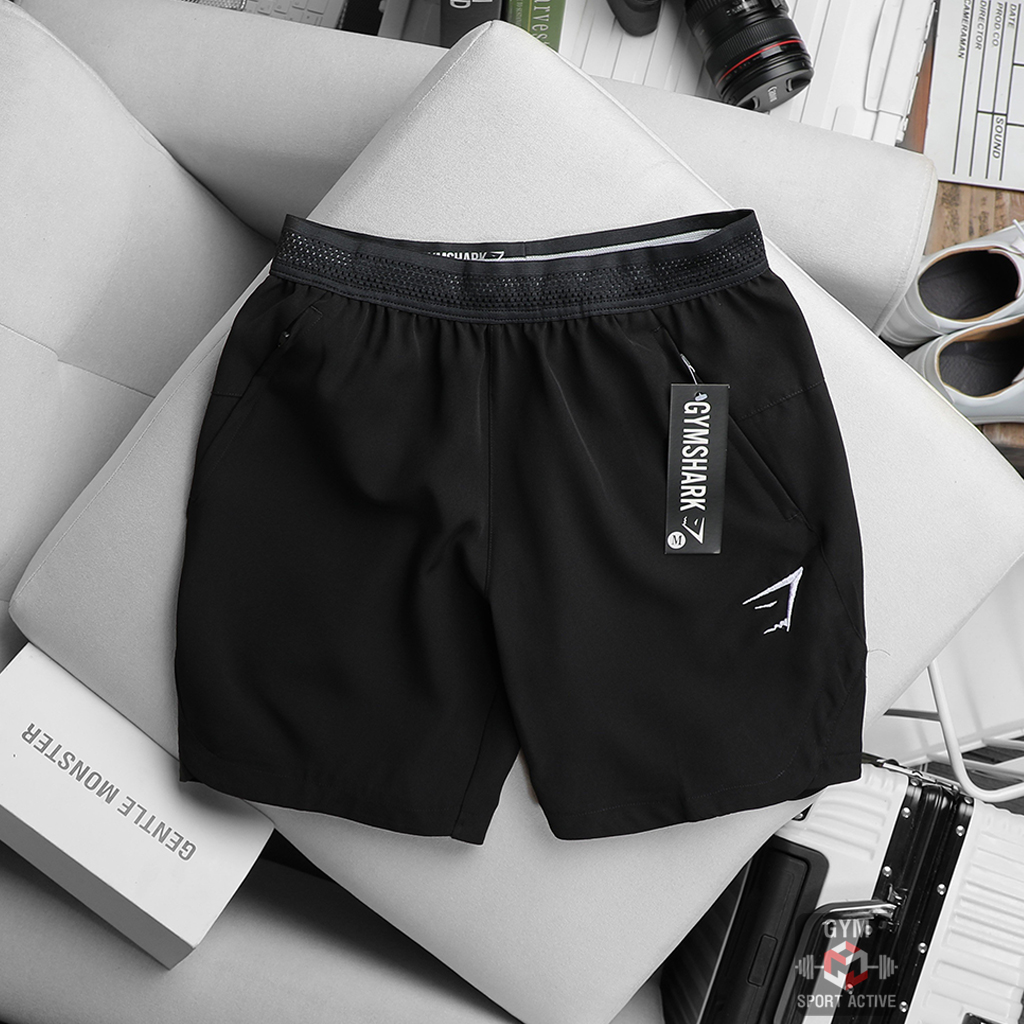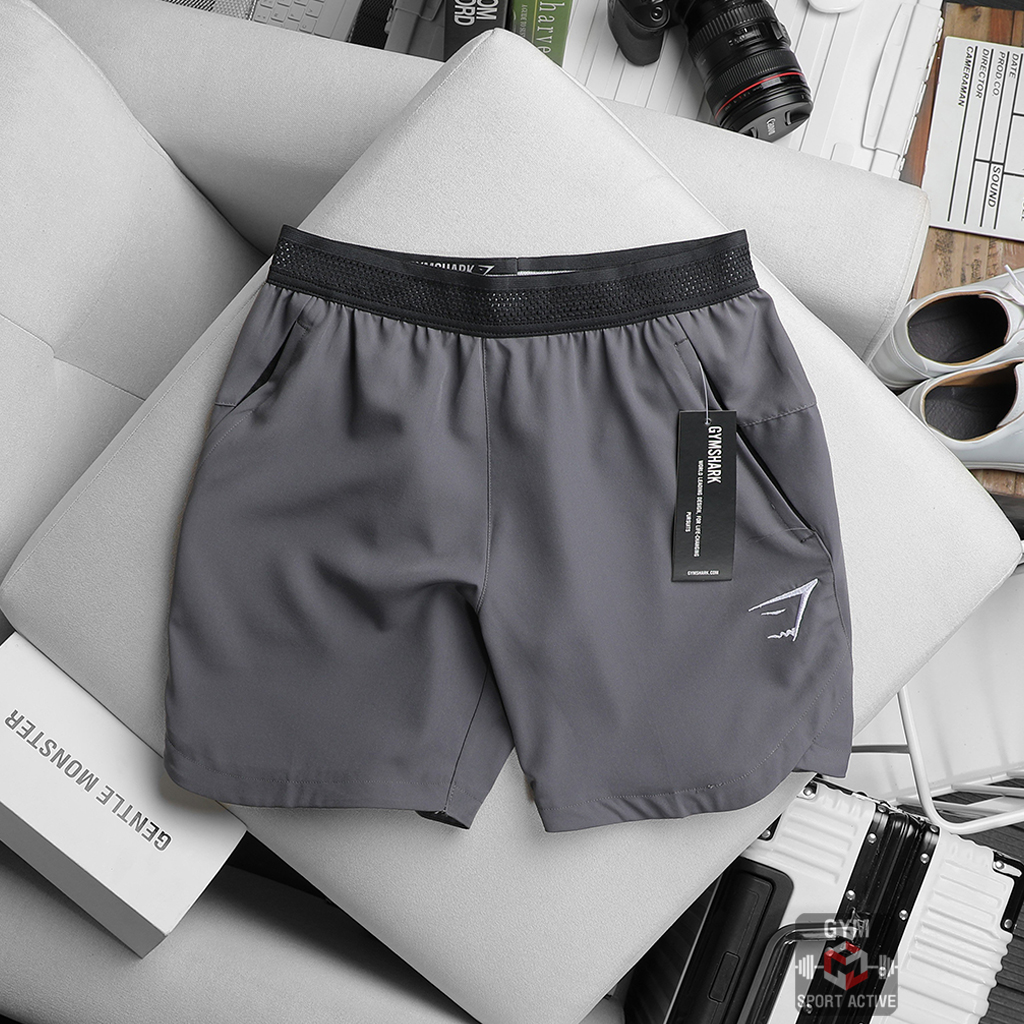 Quần short nam thể thao quần đùi chạy bộ tập gym nam short GymShark chất xi ( dù ) vát gấu phom ngắn trên gối