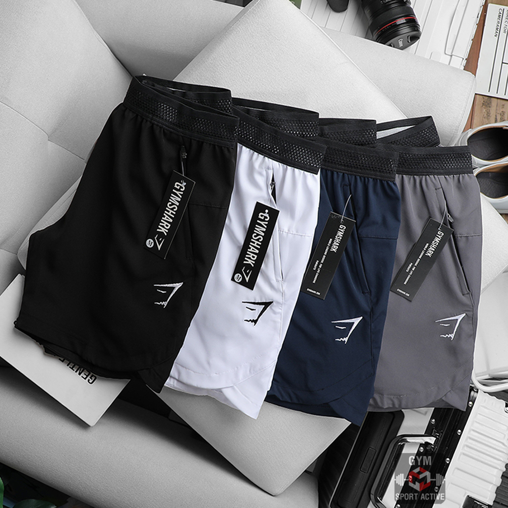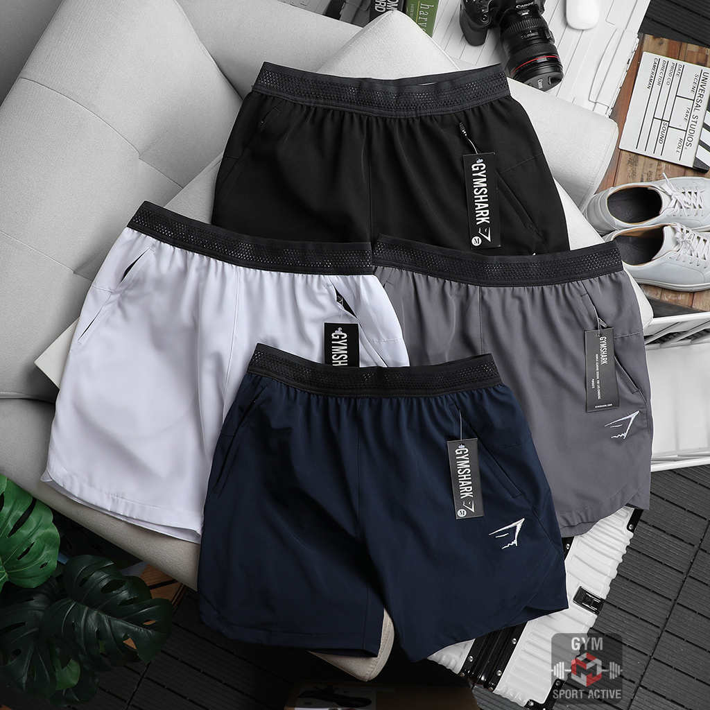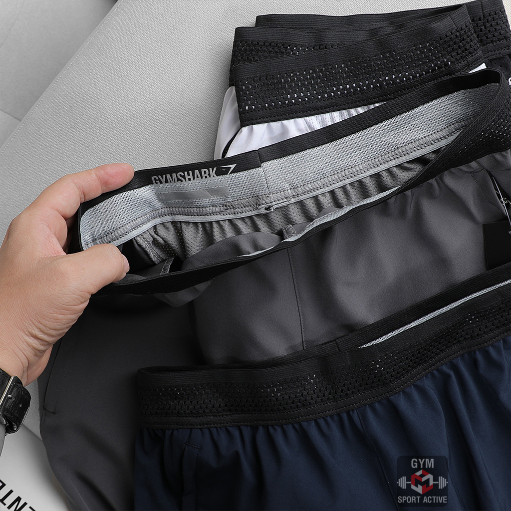 Quần short nam thể thao quần đùi chạy bộ tập gym nam short GymShark chất xi ( dù ) vát gấu phom ngắn trên gối