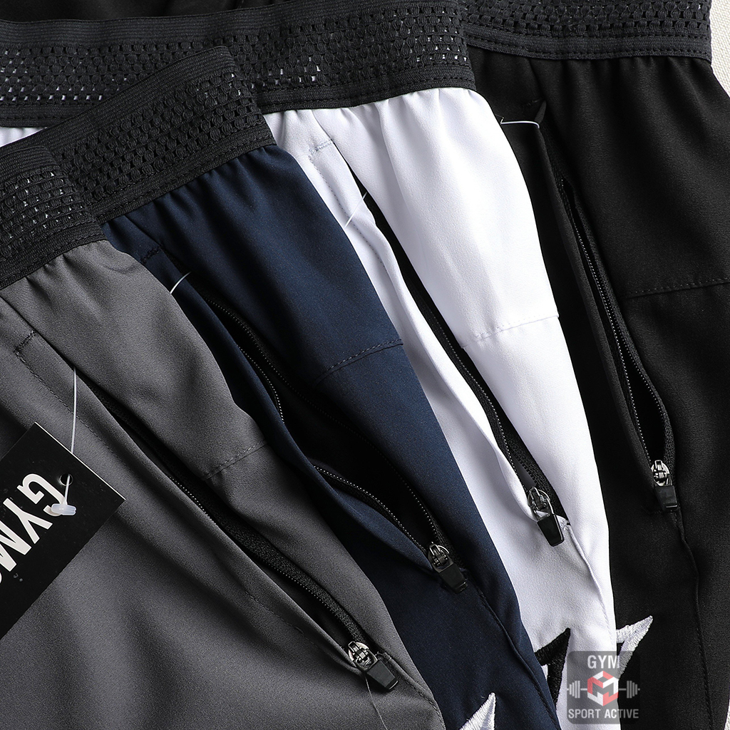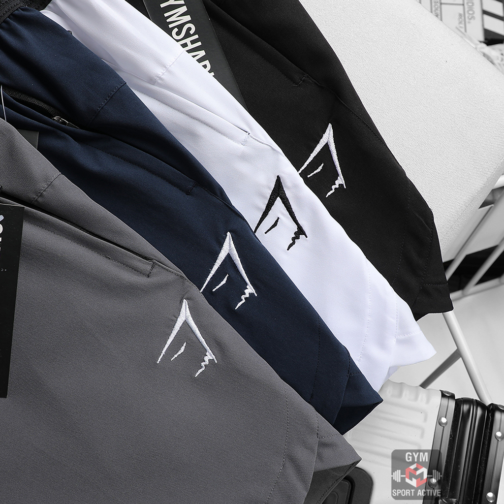 -Phom Quần short nam thể thao quần đùi chạy bộ tập gym nam short GymShark chất xi ( dù ) vát gấu phom ngắn trên gối