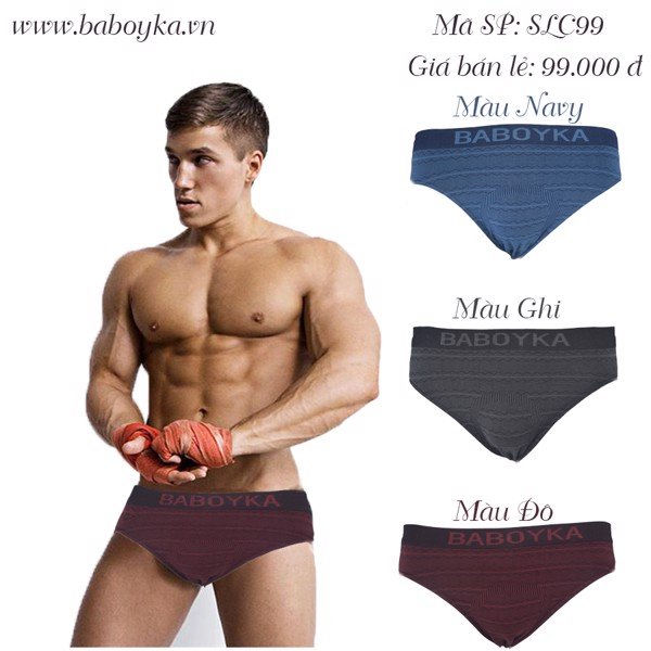 Quần sịp chéo nam dệt liền baboyka có ba màu cơ bản gồm Xanh Navy, Ghi Đậm, Đô.