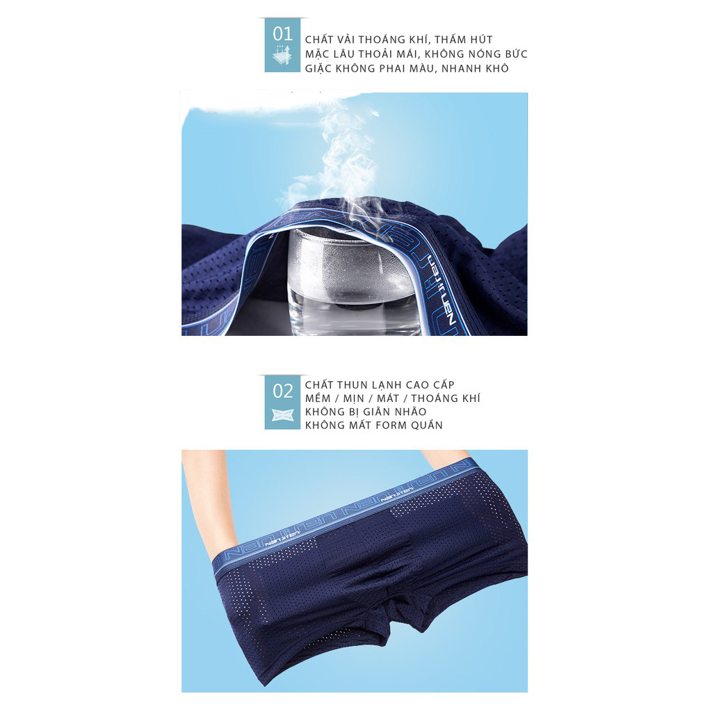 SẢN PHẨM CAO CẤP: Quần Sịp Nam Cao Cấp, Quần Lót Nam Thun Lạnh, Hộp 4 Sịp Đùi Nam Vải Sợi Tự Nhiên Thun Lạnh, Thoáng Khí, Co Giãn 4 Chiều, Không Phai Màu, Không Xù Lông, Thấm Hút Mồ Hôi, Thoát Hơi Và Kháng Khuẩn Rất Tốt.