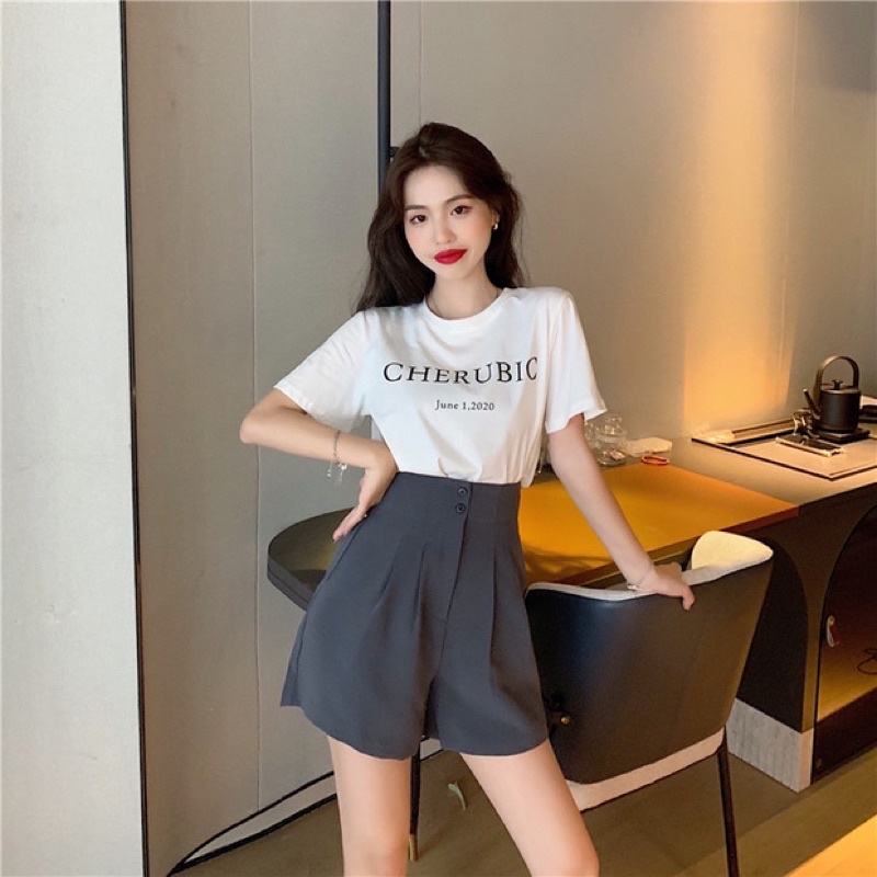 Quần sóoc đùi kiểu hàn quốc thẳng lưng chân rộng