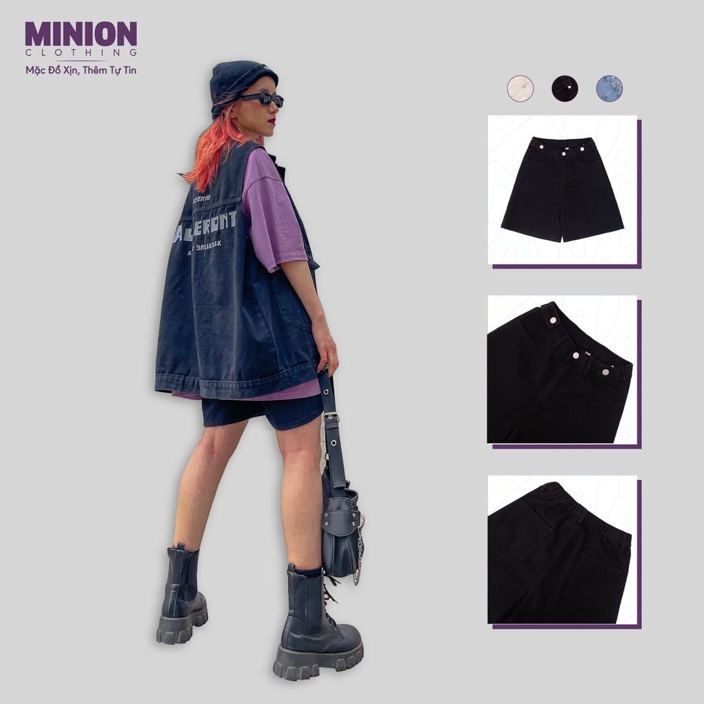 Quần sooc ống rộng MINION CLOTHING chun eo lưng cạp cao short Unisex nam nữ Ulzzang Streetwear Hàn Quốc chất bò Q328