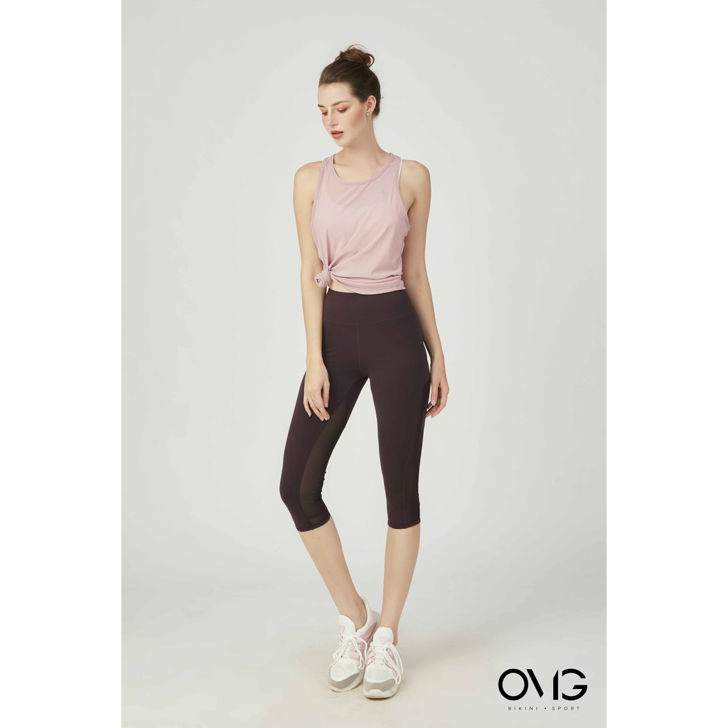 Giới thiệu Quần tập Gym, Yoga Nữ OMG Sport kiểu lửng phối lưới - màu Đỏ boocdo - BG075_BOX
