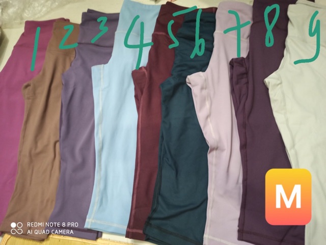 Chất vải thun thể thao polyester kết hợp spandex co giãn tốt, thoáng khí, thấm hút mồ hôi, dạng quần lưng cao ôm bụng tốt, có túi nhỏ ở lưng, form ôm thích hợp tập gym yoga