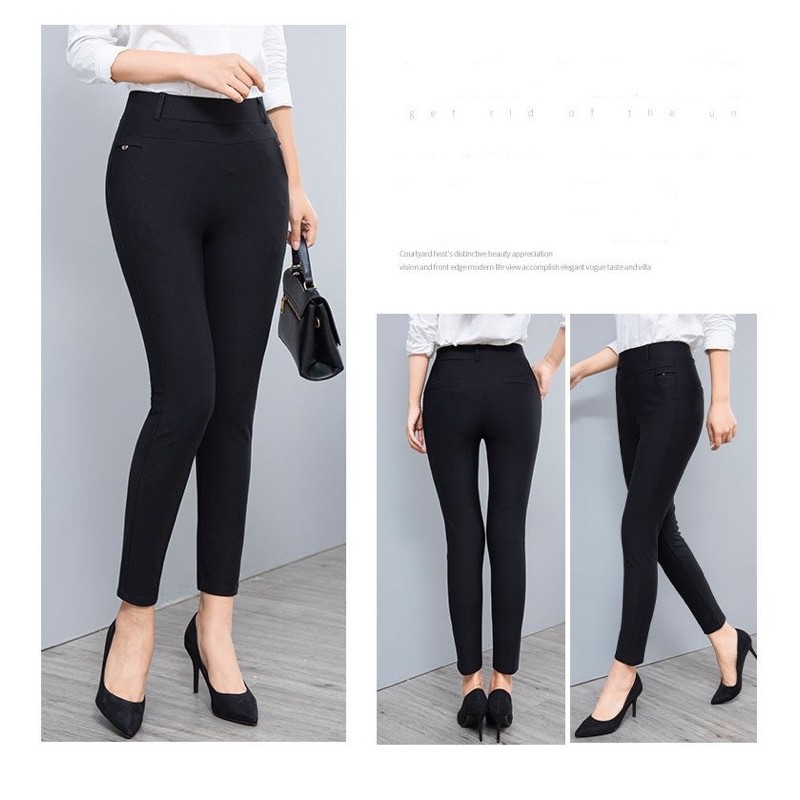 Tên sản phẩm: Quần tây thun đen trơn lưng liền có con đĩa túi đính đá 2 màu size 5XL
