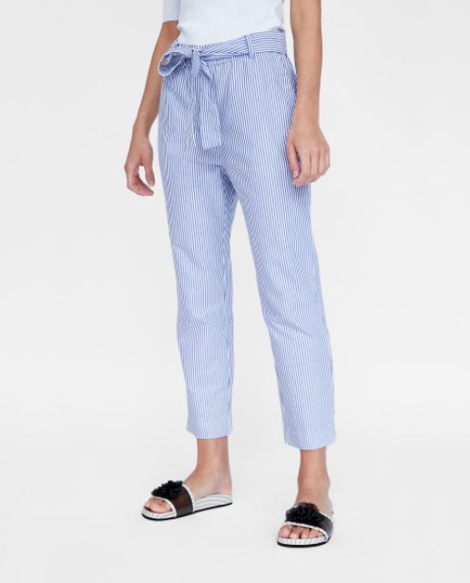 Quần tây chuẩn xịn, chất vải linen dày dặn, sọc xanh trẻ trung. Lưng có thun co giãn thoải mái, thêm dây lưng thắt nơ rất xinh