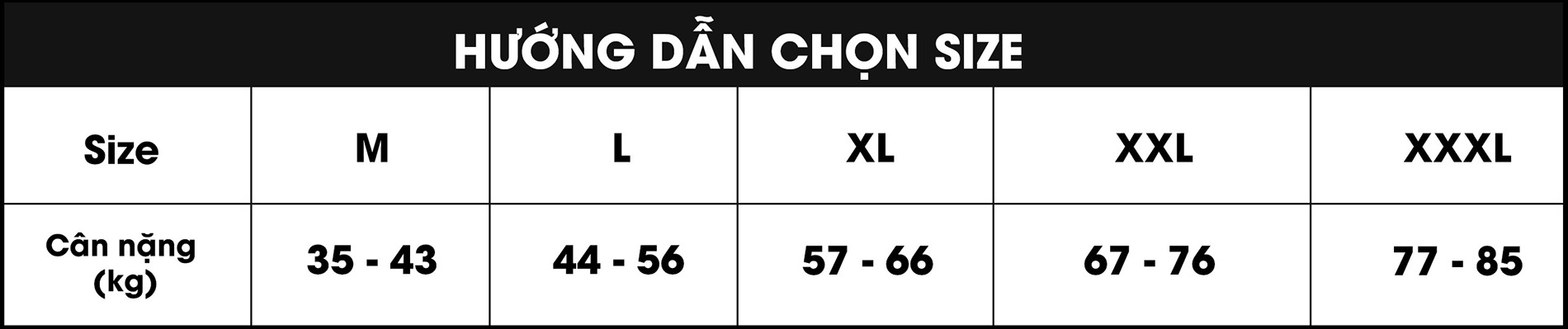 - Size XXXL: 77-85kg