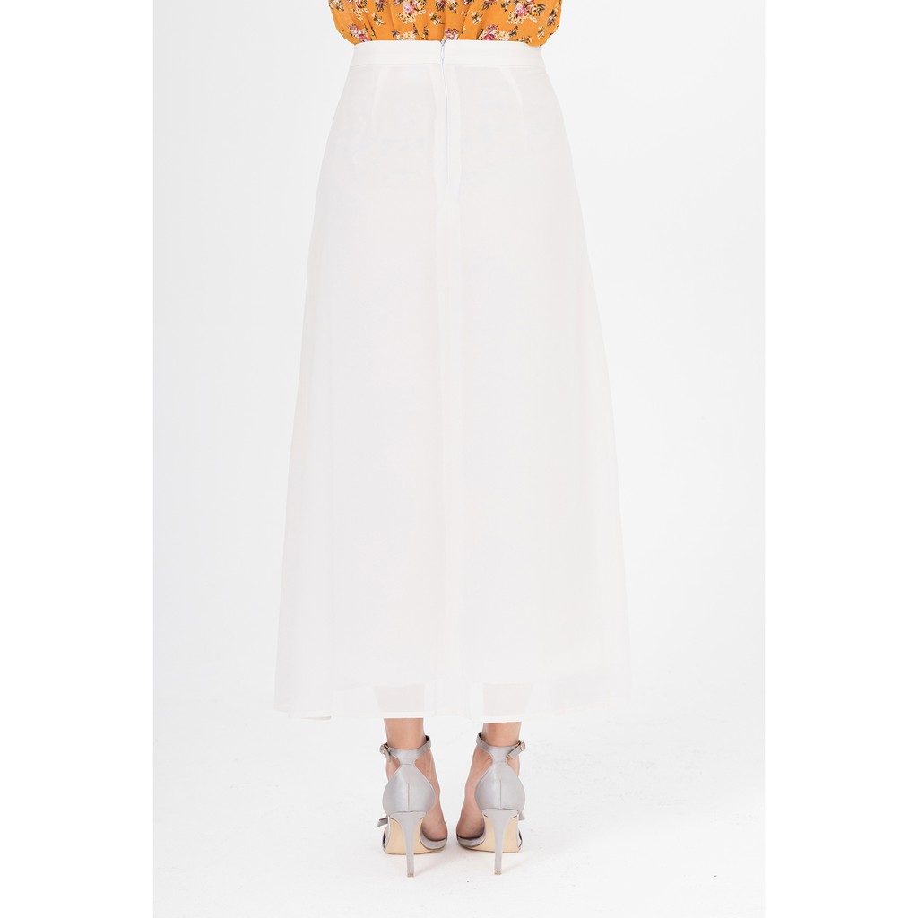 Giới thiệu Quần váy phủ voan,xẻ trước VIEN TRAN V64W18T007(Ghi/Trắng Cổ)