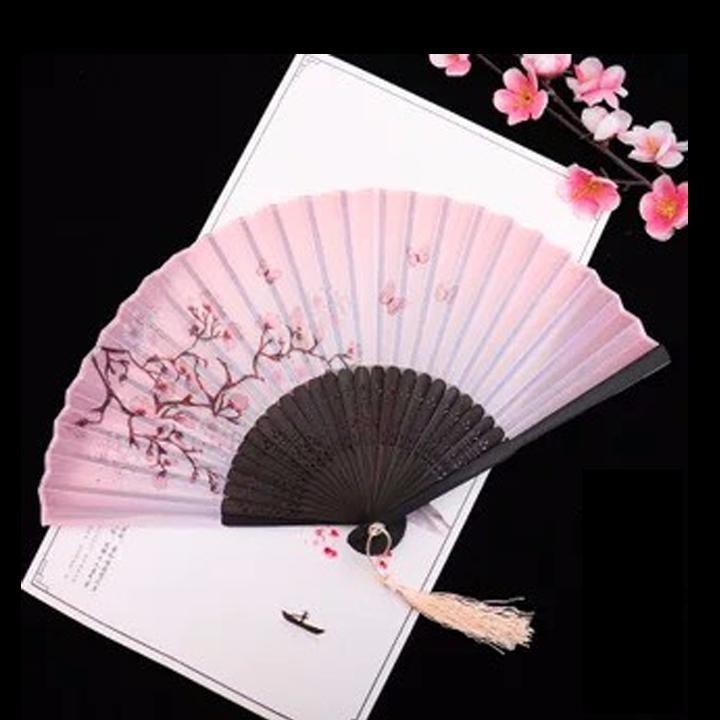 Giới thiệu Quạt cổ phong hồng đào nở quạt cầm tay quà tặng xinh xắn phong cách Trung Quốc vải lụa in hoa