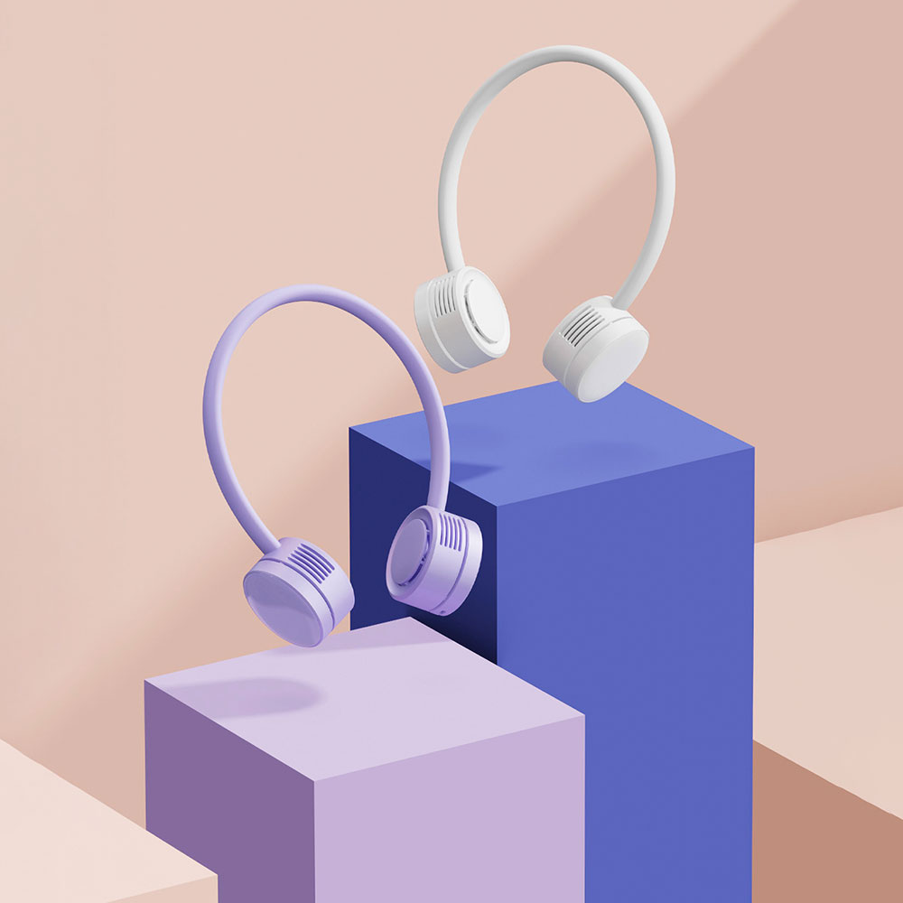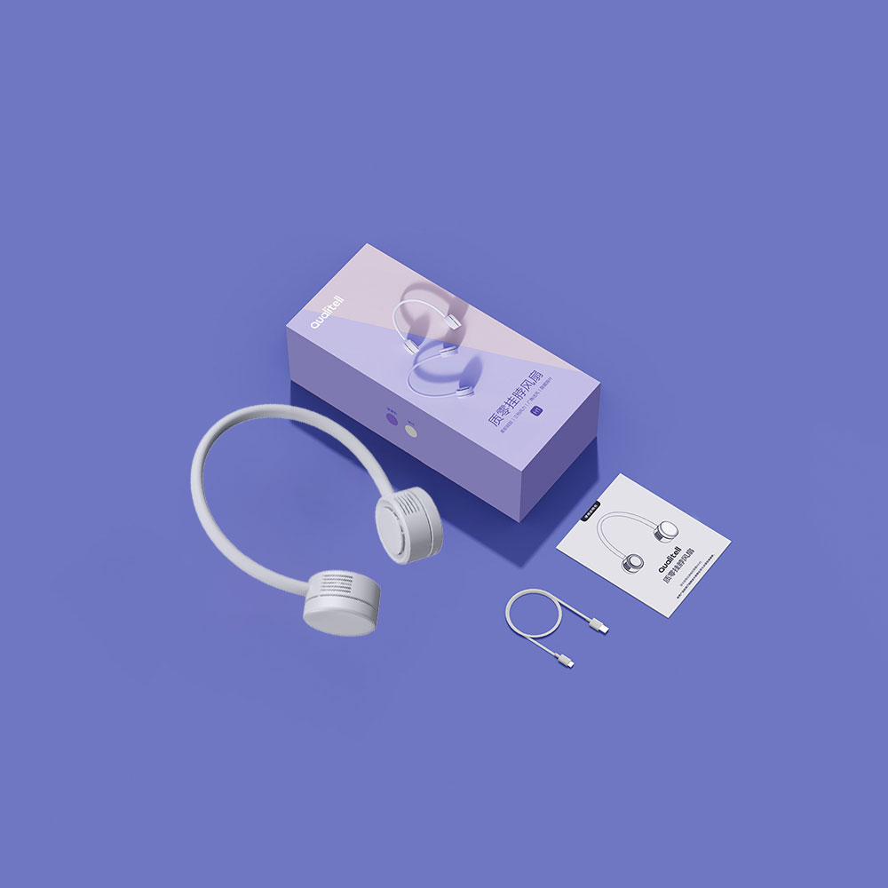 Bề ngoài được thiết kế theo dạng tai nghe và đường cong áp sát vào cơ thể, mang lại cảm giác thoải mái và như một phụ kiện thời trang đôc đáo, phù hợp với các hoạt động ngoài trời, đi bộ, mua sắm, du lịch, thâm chỉ có thể sử dụng như một quạt cầm tay