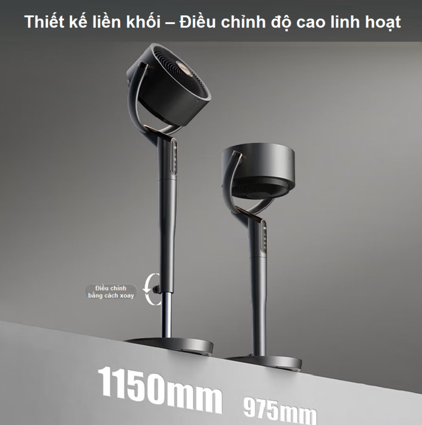- Cánh quạt góc lớn, gió mạnh nhưng vẫn êm dịu
