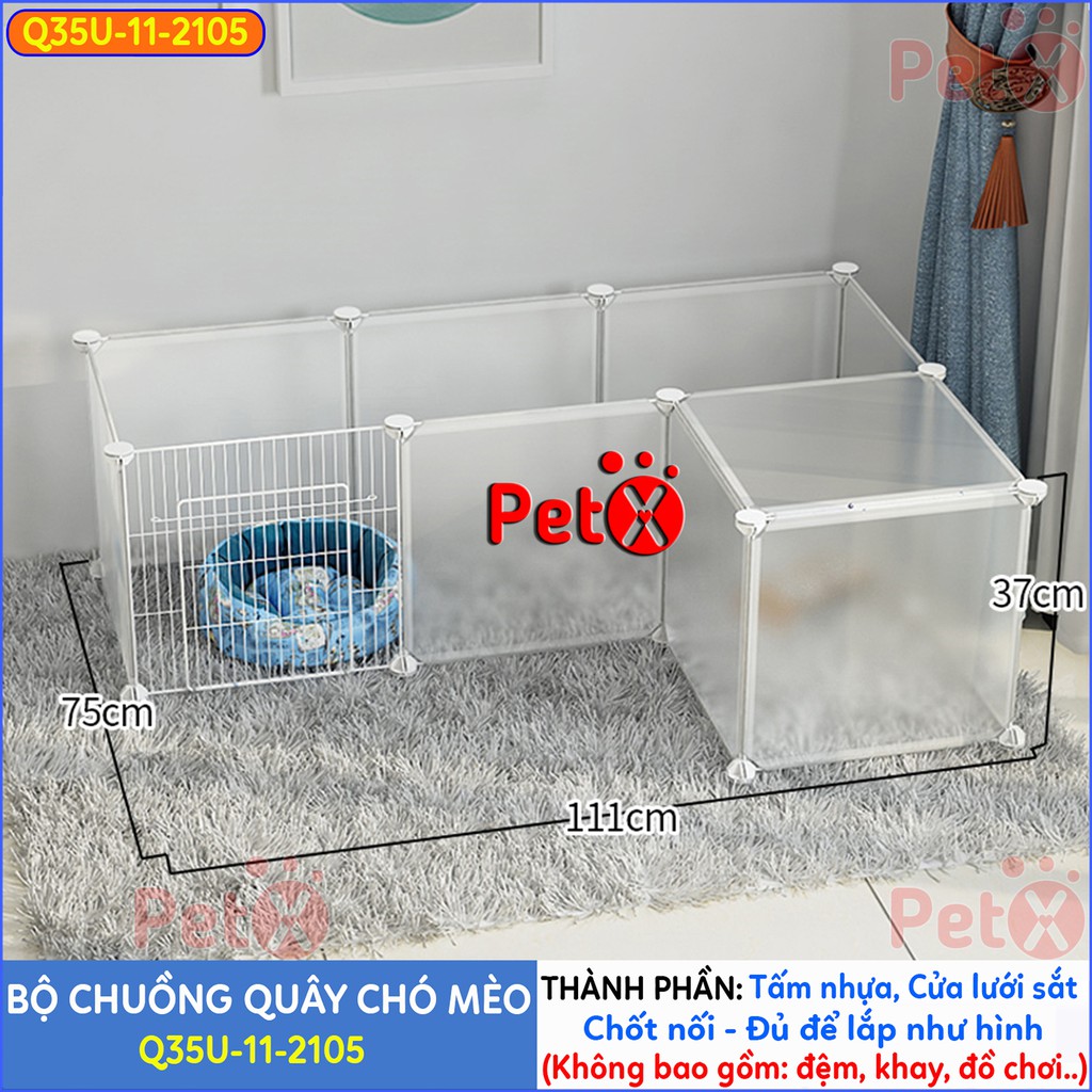Kích thước của tấm ghép Quây chuồng chó mèo lắp ghép thường gồm có các loại - Tấm vuông 35x35cm - Tấm hình chữ nhật 45x35cm