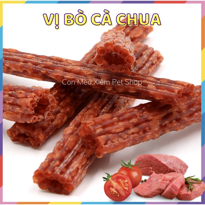 THÔNG TIN SẢN PHẨM : - Trọng lượng: 15gr/ thanh - Thành phần: thịt, phô mai, ngũ cốc, bắp, cà chua, axit amin, vitamin và khoáng chất,.. -Thương hiệu: 7 Dental Effect - Bảo quản: Tránh ánh nắng trực tiếp và tránh nơi có nhiệt độ cao, ẩm ướt. - Hạn sử dụng là 18 tháng - Ngày sản xuất có ghi trên thân túi
