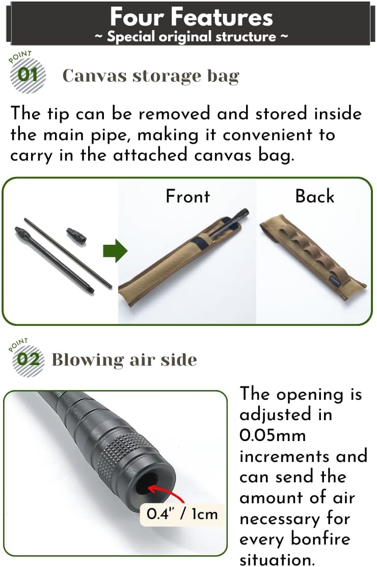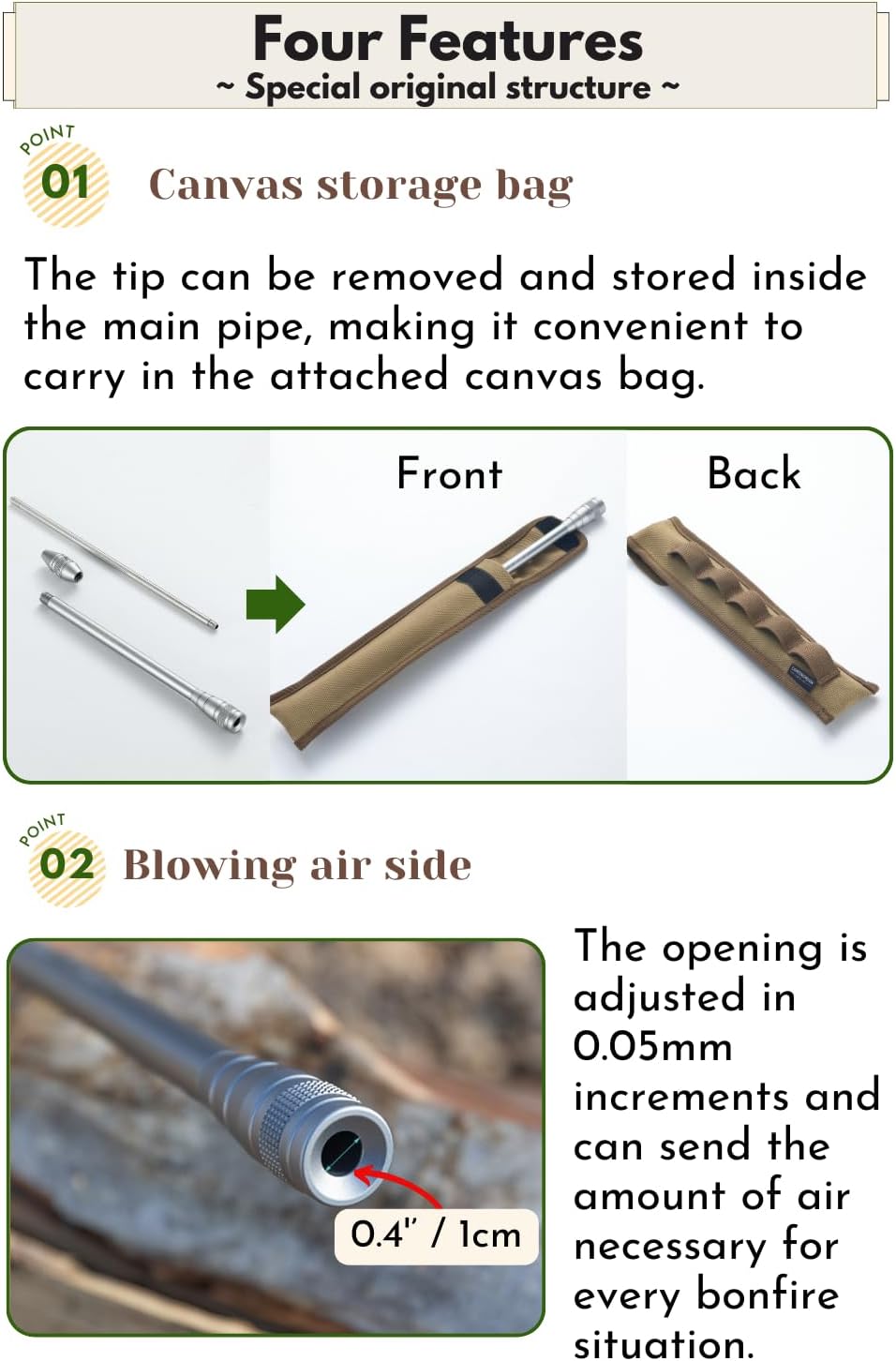 [Phía thổi khí] Lỗ mở được điều chỉnh theo từng bước 0,05mm và có thể thổi lượng không khí cần thiết cho việc đốt lửa trại.