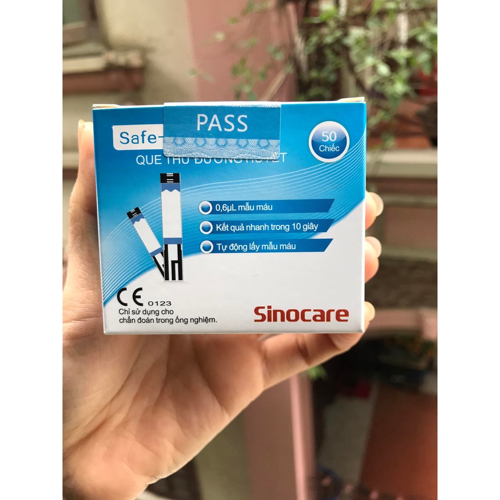 - Que thử dễ mua trên thị trường - Que thử Safe-accu được sản xuất dựa trên công nghệ tiên tiến của Đức - Cho kết quả nhanh, độ chính xác cao, tin cậy. - Máy đo đường huyết Sinocare có thể đo trong phạm vi từ 20 - 630mg/dl (1.1-35mmol/l).