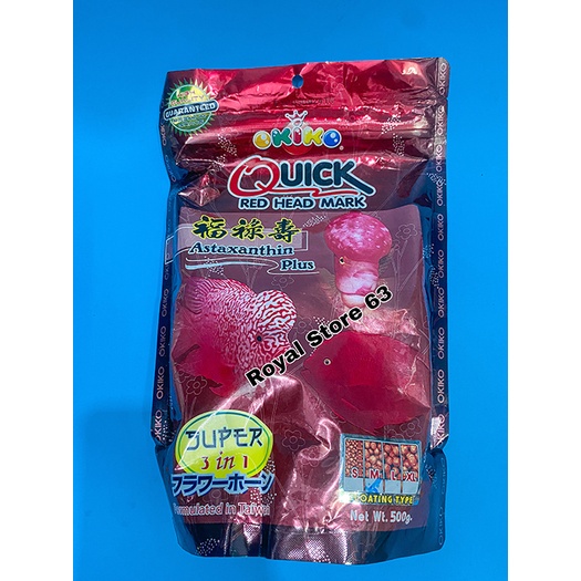 Giới thiệu Quick Red Head Mark Okiko Đỏ Thái Lan thức ăn cho cá La Hán 500g