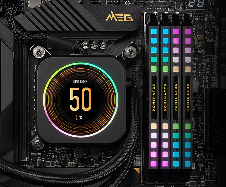 | Led Controll Ram PC Corsair Dominator Platinum RGB DDR5 được trang bị dải LED và đồng bộ thiết lập tại iCUE để tạo thành một hệ sinh thái gắn kết toàn bộ thiết bị của bạn. | ![]() |