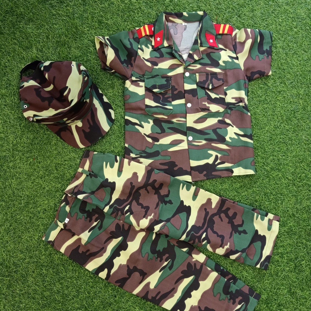 Bộ trang phục gồm: áo, quần và mũ (như hình)