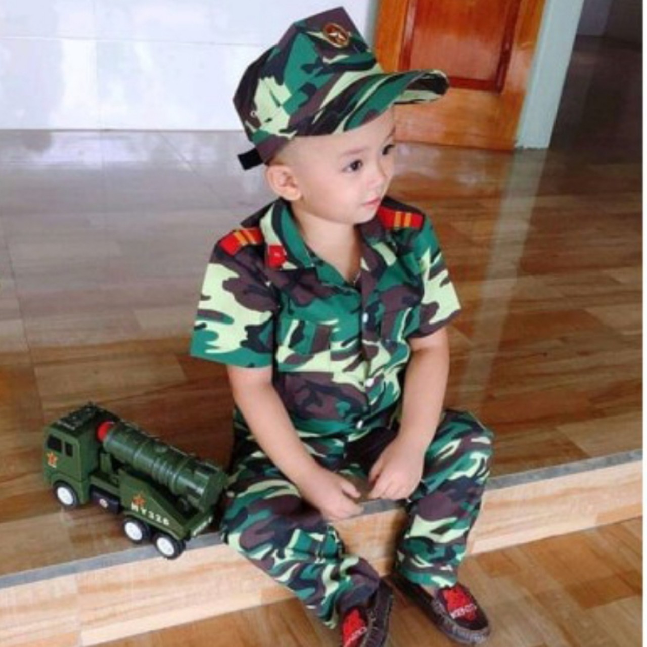 Trang phục rằn ri hóa trang cho bé cực kỳ dễ thương.