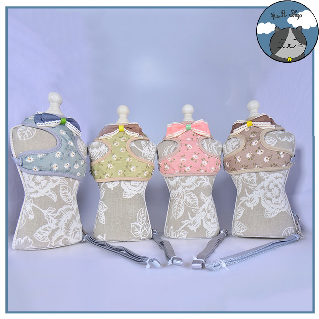 Giới thiệu [Rẻ Vô Địch] Dây Dắt Chó Mèo Yếm Ngực Hàn Quốc Hình Hoa Kèm Nơ Retro Dây Dẫn Cho Thú Cưng Chất Liệu Cotton Khoá Kim Loại